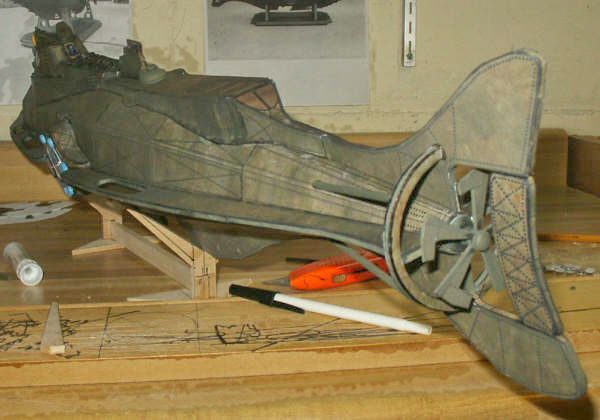 handling/banging around purposes, this is probably a great thing to do. I'd probably do it with corrugated cardboard though– JL ]]] . So, I balsa wooded all the fins, prop, rudder, rails and anchor. Now, if you have patience and plenty of time this is a nice option to do. I was quite happy with the final results: